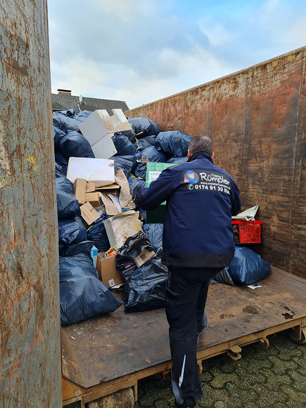 Unser Entrümpelungsteam arbeitet umsichtig und sorgt selbstverständlich für ausreichende Entsorgungsmöglichkeiten und gegebenenfalls Container zum Abtransport des anfallenden Mülls. Sie brauchen sich um nichts zu kümmern.